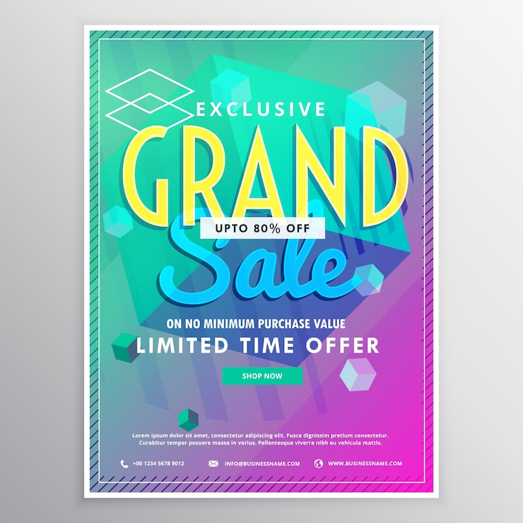 グランド オープン ポスター デザインイラストテンプレート素材PSDダウンロード。