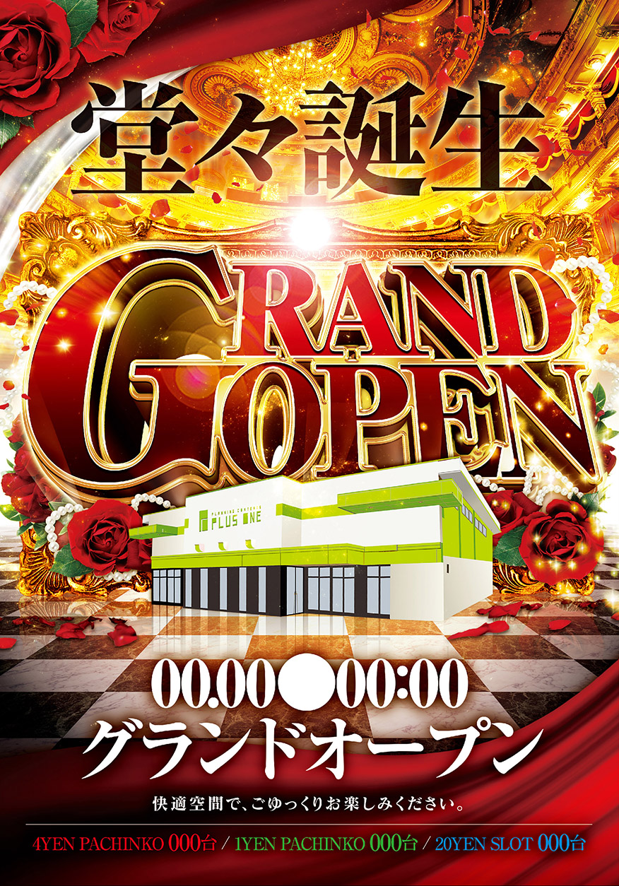 グランドオープンチラシ レイヤー別ご自由に編集可能 パチンコ&スロット店のGRANDOPENに! - designstudio - BOOTH。