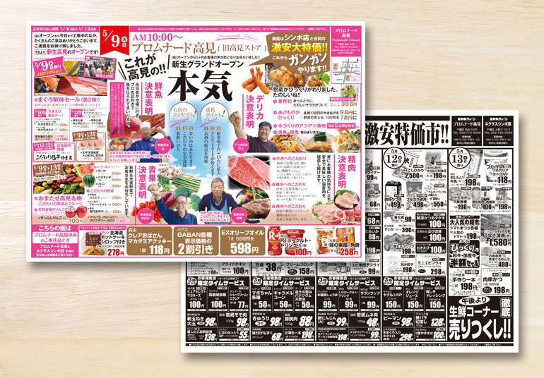 プロムナード高見様 グランドオープンチラシ制作実績名古屋 パンフレット・チラシのデザイン制作 パンフレット制作王国。