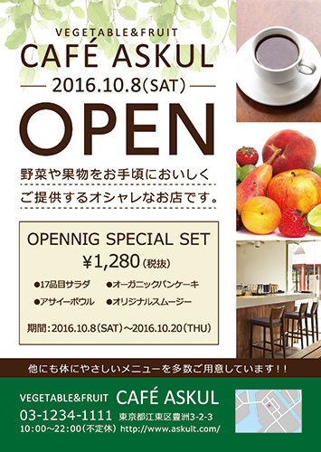 オープン・開店のチラシ無料テンプレート・デザインサンプル - ネット印刷グラフィック。