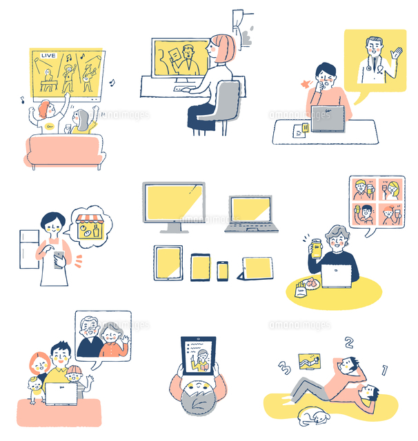 オンラインネットワークの様々なシーン セット 10933000303 の写真・イラスト素材アマナイメージズ。