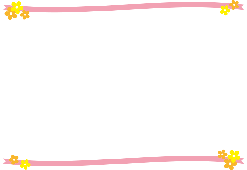 シンプルなリボンと花の枠 横 の無料 フリー イラストかわいい手描きの無料素材「てがきっず」保育園・小学校・介護施設にぴったりのフリー素材イラスト。