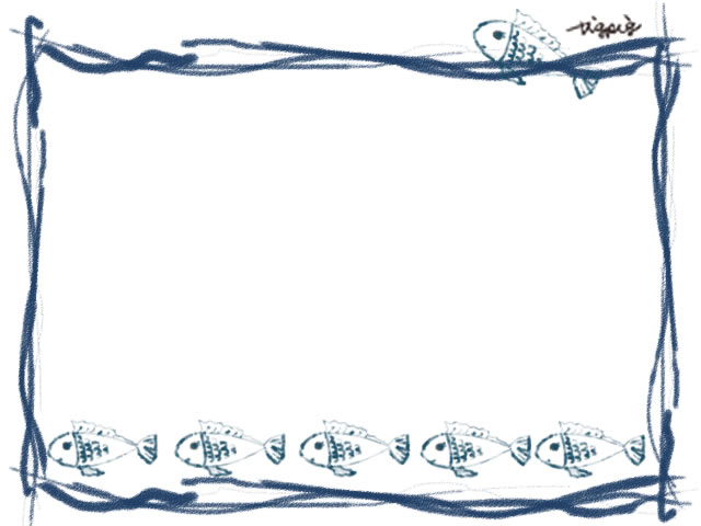 フリー素材:フレーム;シンプルで大人可愛いラフなラインと青い魚がかわいいのイラストの飾り枠 フレーム 640×480pix無料素材とwebデザイン・DTP・動画制作 tigpig。