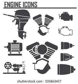 車のエンジン、オートバイ エンジン、航空機用エンジン、ボート エンジン、アイコンとシンボルのイラスト素材・ベクター Image 59847912。