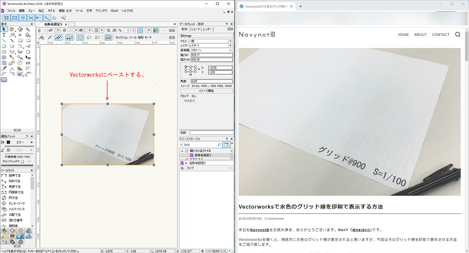 Vectorworksに画像や写真、スクリーンショット画像を取り込む方法NAVYNOTE。