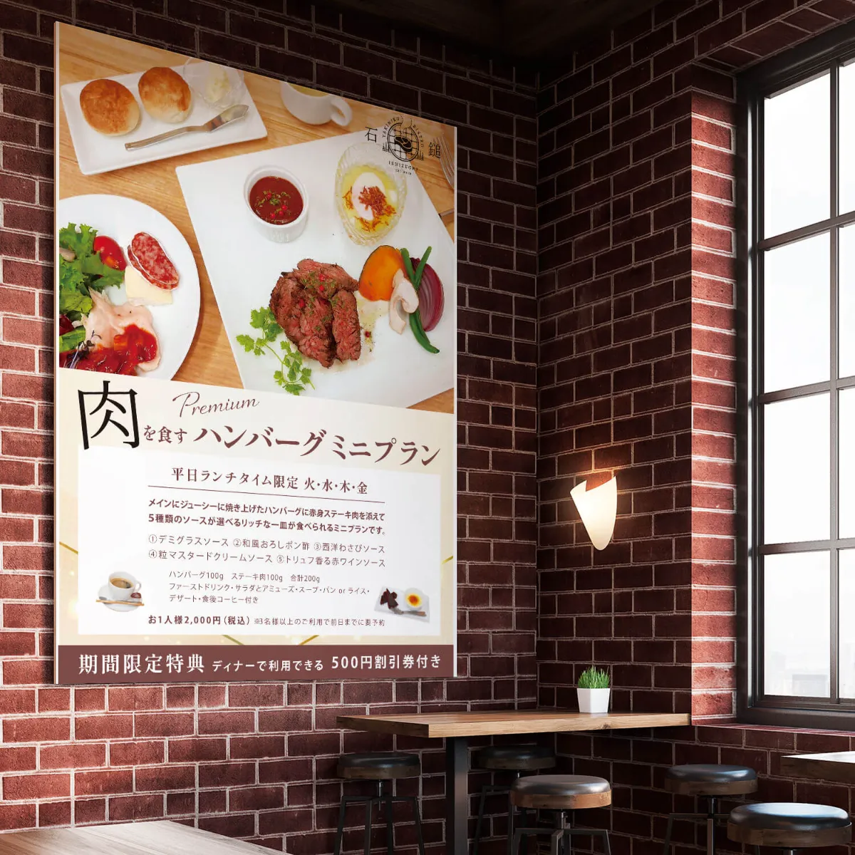 飲食店の店内用ポスター制作 支援・制作事例リノウェブ。