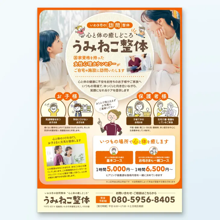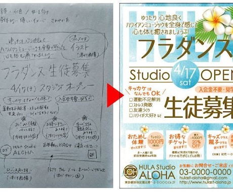 レンタルチラシ作成例 原稿&デザイン代行 限られた中で表現するには?集客チラシラボ。