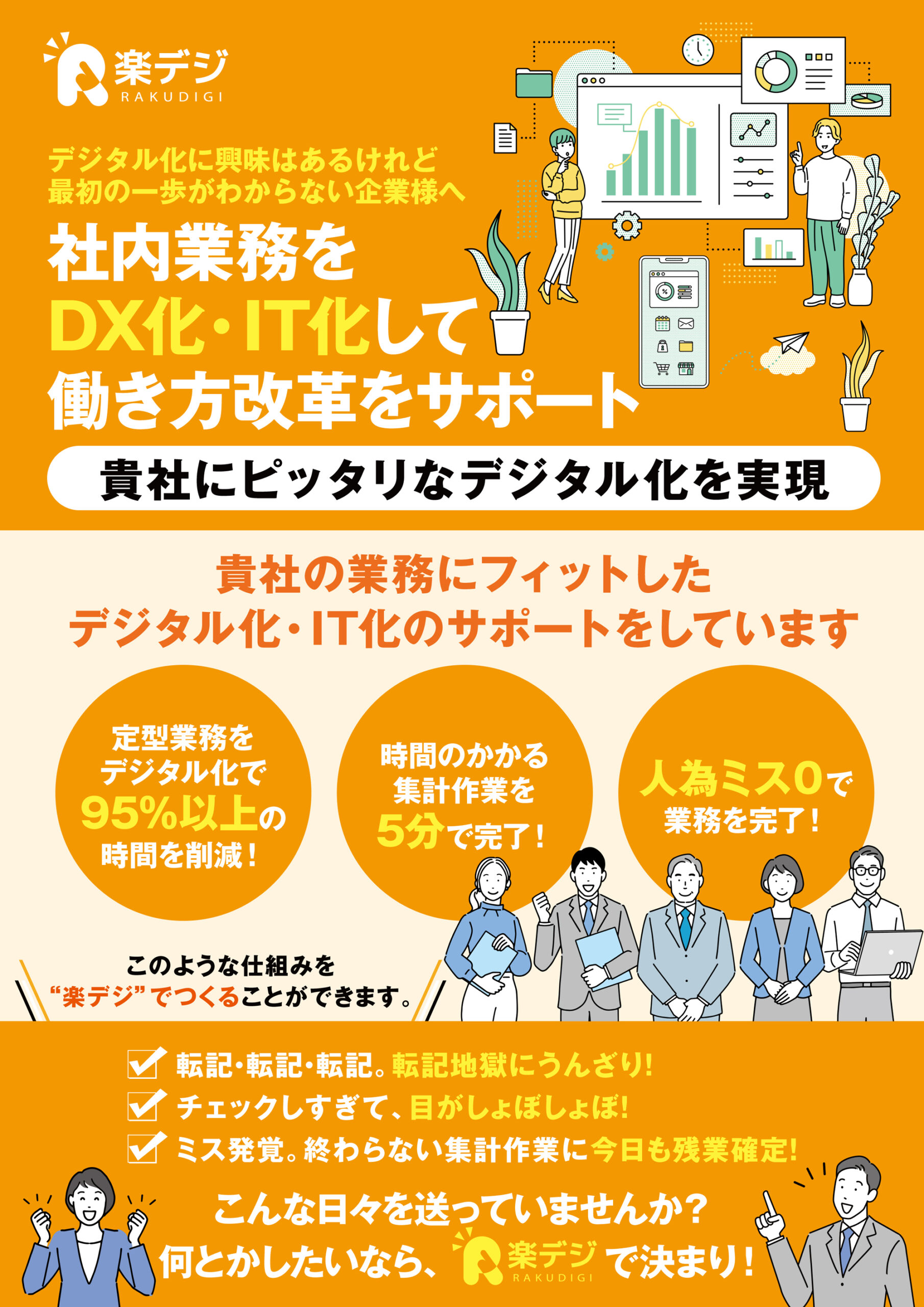 DX化・デジタル化のシステム構築のチラシデザイン作成事例集客チラシラボ。