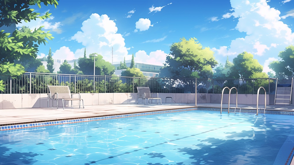 市民プール、ウォータースライダー、リゾートな背景素材。7枚セット - AIな背景素材屋 - BOOTH。