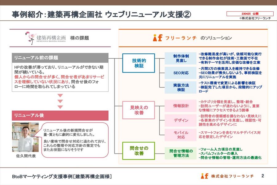 事例紹介:建築再構企画社のコーポレートサイトリニューアル支援フリーランチのBtoBマーケティング事例。