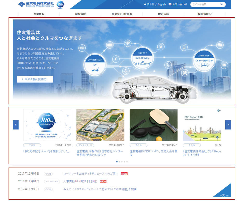 大規模コーポレートサイトを全面的に刷新「コーポレートサイトリニューアル」 住友電気工業株式会社ホームページ制作会社・Web制作会社 東京 大阪株式会社アリウープ。