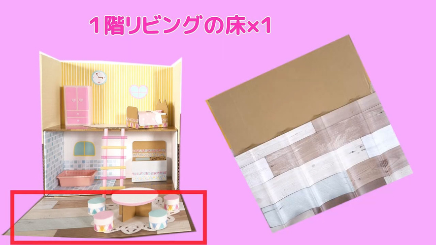 ダンボールを使ったドールハウスの作り方 1階部分 How to make a dollhouse using corrugated cardboardthe 1st floor part。