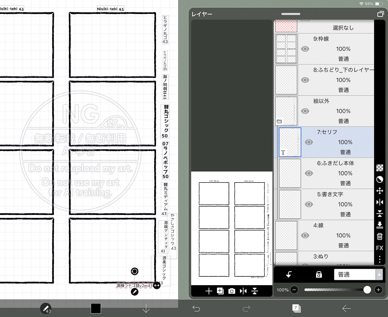 vkos on X: "漫画フォントかー ア化゛スを使う時は自作テンプレートの柱にコピペ用のを置いていて、こんな感じで作ってます最近は勢いで描いて上げたい時にア化゛ス使うことが多いんで、丸ゴばっかり https:t.co 7NH4r9huTQ"X。