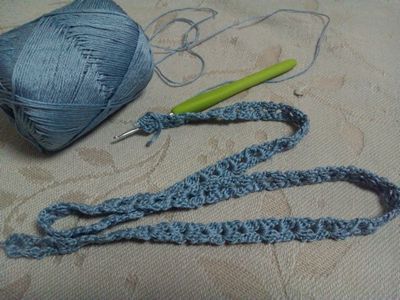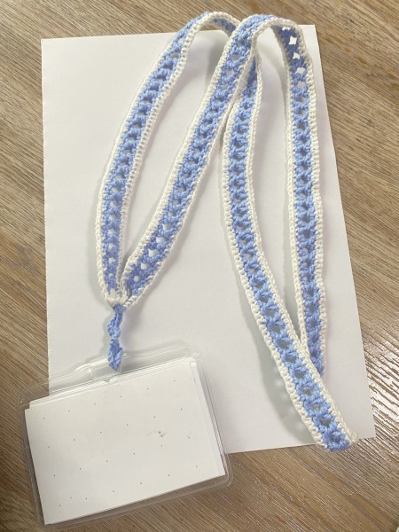 ネットで見かけた編み方がリボンに見えたのでリボン模様のネックストラップにしてみました ハンドメイド 記録 てといと。