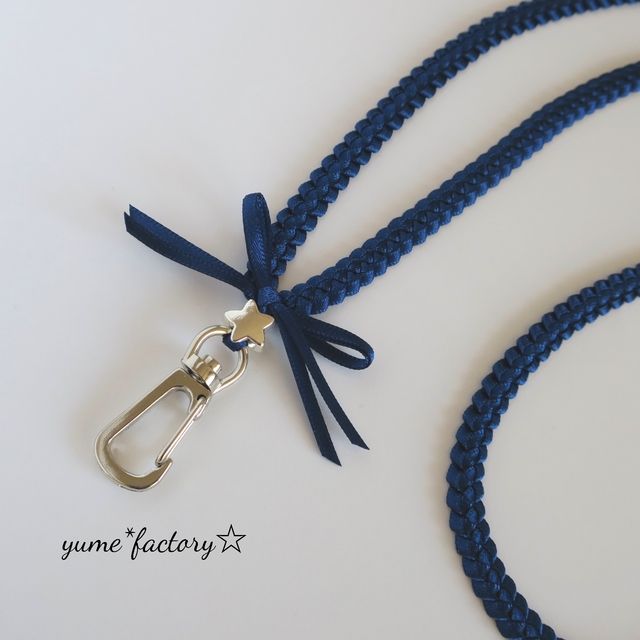 定番☆人気☆ ネックストラップ リボンレイ ネイビー×ネイビー シルバースター✩⡱。