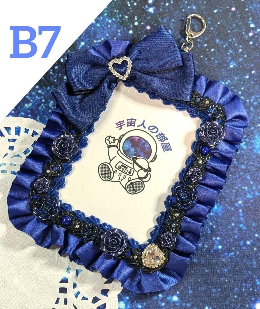 AmazonB7トレカケースデコ 硬質ケースデコ トレカキーホルダー ネイビー 銀 薔薇トレカ 通販。