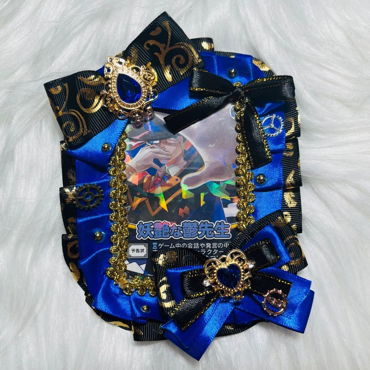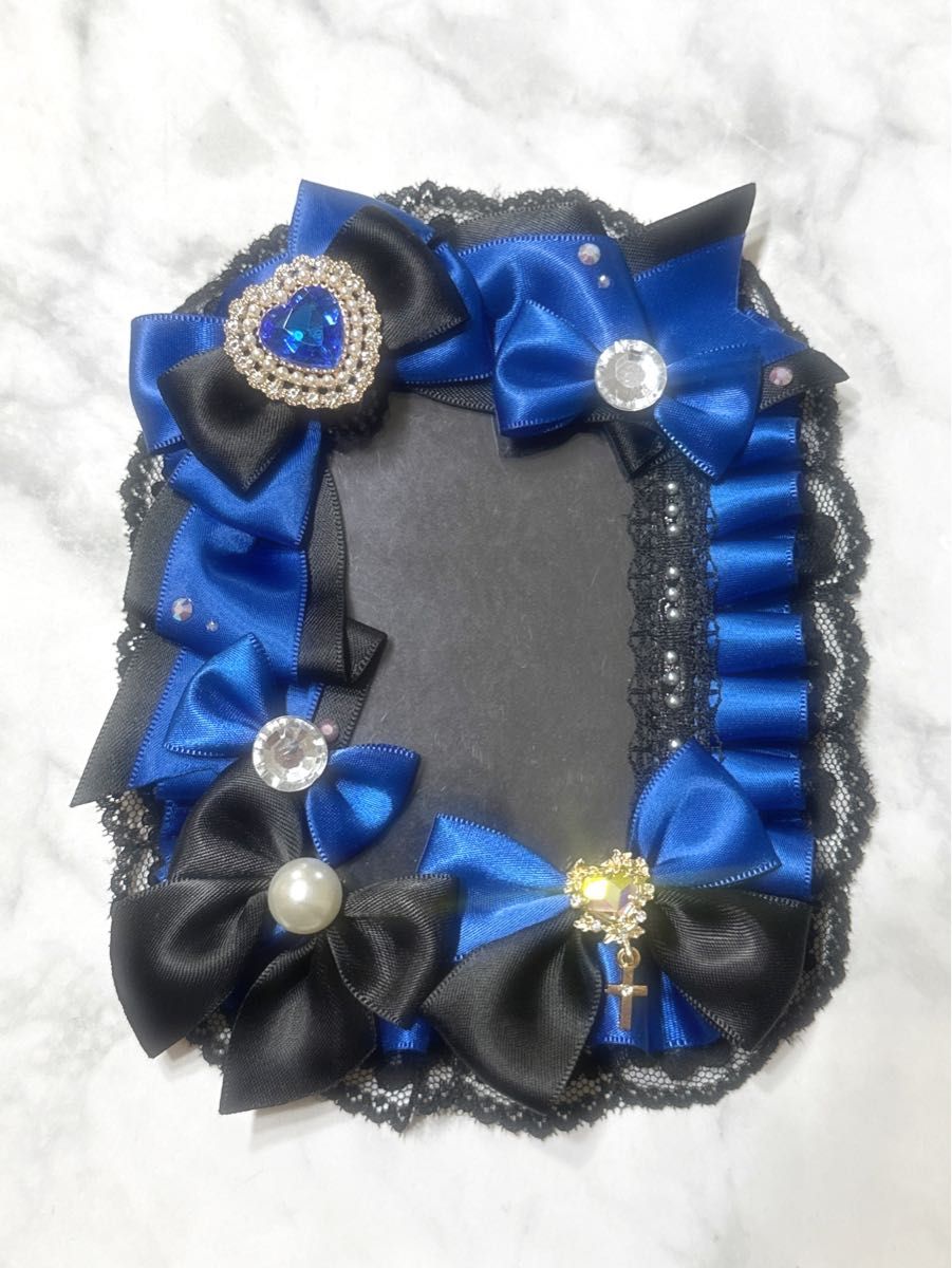 ハンドメイド 硬質ケースデコ 青×黒 ロゼット トレカケースの通販 by ミルクティー's shop。