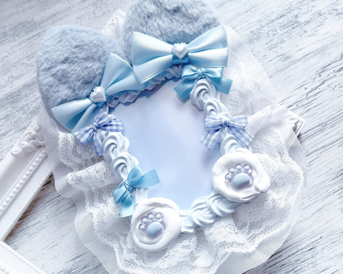B8 硬質トレカケースデコ水色天使界隈猫耳ナースレースデコ♡012♡。