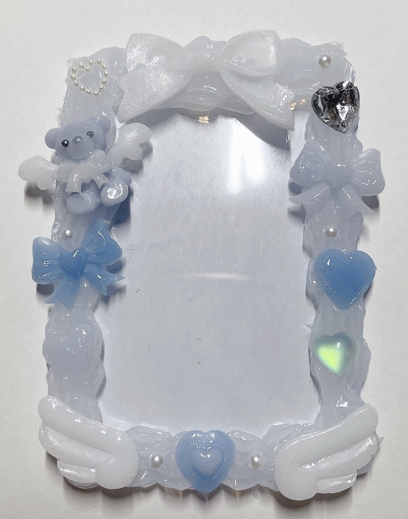 カードケースデコ ハンドメイド 青 水色 きらきら リボン ホイップデコ 0026-28 ホイップデコ 硬質ケース B8 トレカケース 天使モチーフ偏光パール ラメ 白 青 推し活 名刺入れ・カードケース ゆき ゆきやこんこ 通販 17969786Creema クリーマ。