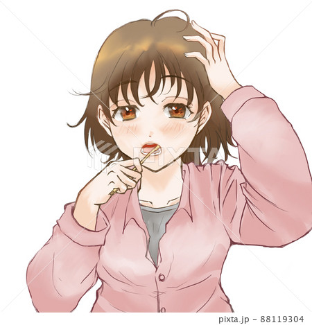 眠そうな顔で歯磨きをする女性のイラスト素材88119304- PIXTA。