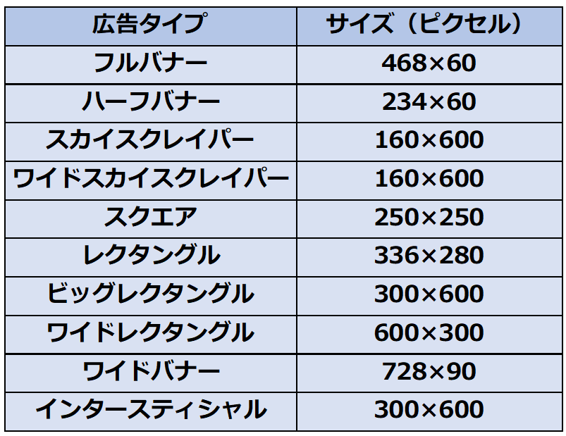 作っておくと便利なバナーサイズ一覧 ネットワーク広告対応- マーケティングオートメーションツール SATORI。