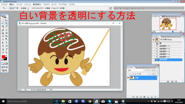 フォトショップで白背景を透明にする方法手順・使い方素材ラボ。