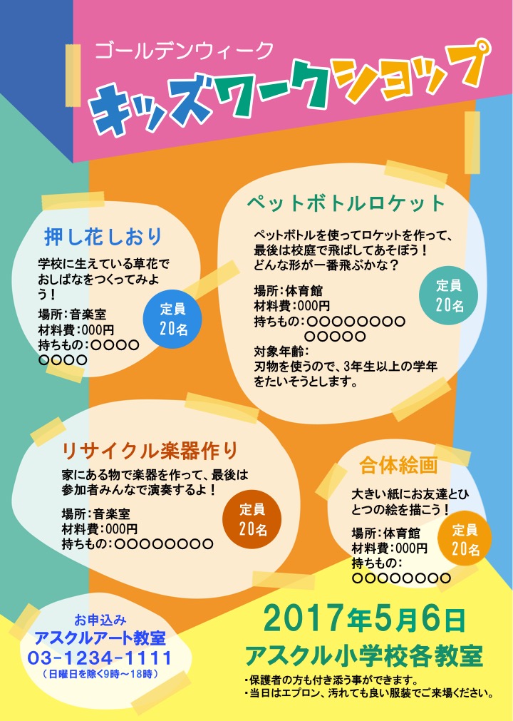 ワークショップ_イベント・展示会チラシ・フライヤーの無料デザインテンプレート - ネット印刷グラフィック。