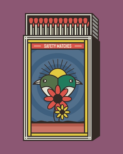 マッチ箱とマッチベクトルイラストヴィンテージレトロでクールなマッチ箱のパッケージデザインPremiumベクトル素材。