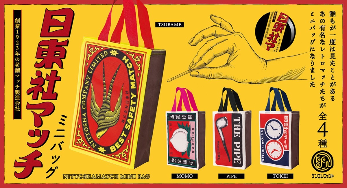 コンパクトサイズながら昭和レトロ感が炸裂!お馴染みの有名マッチ4種がミニバッグになった「日東社マッチ ミニバッグ」2月下旬に登場。 -株式会社ケンエレファントのプレスリリース。