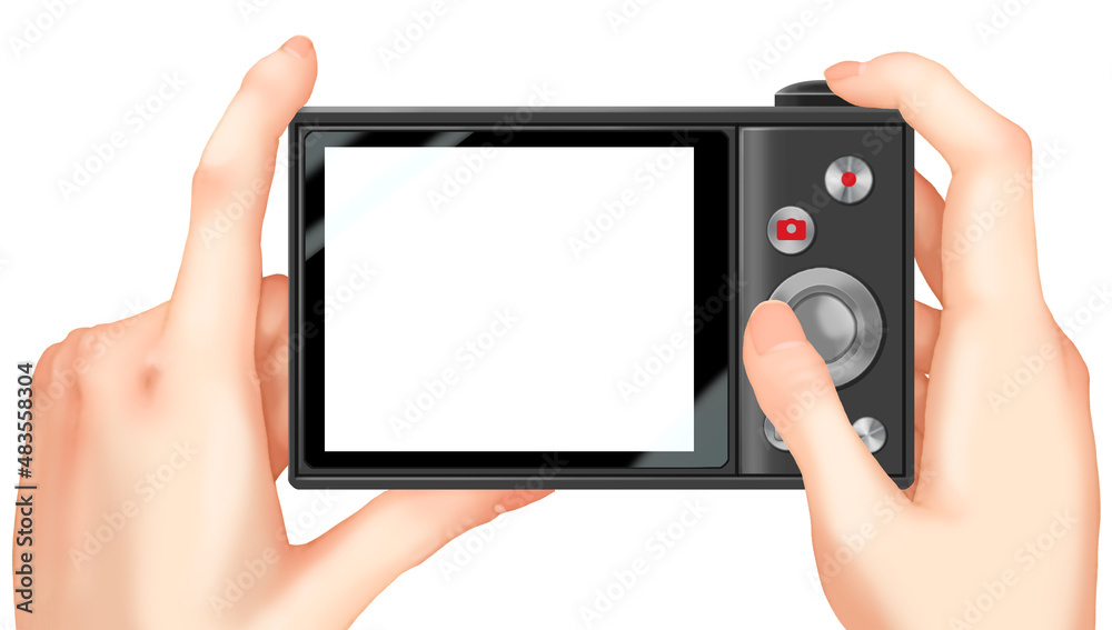 空白の画面でデジタルカメラを持つ手。フラットスタイル」のベクター画像素材 ロイヤリティフリー342016010Shutterstock。