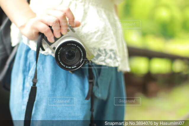 ミラーレス一眼を持つカメラ女子の手の写真・画像素材-Snapmart スナップマート。