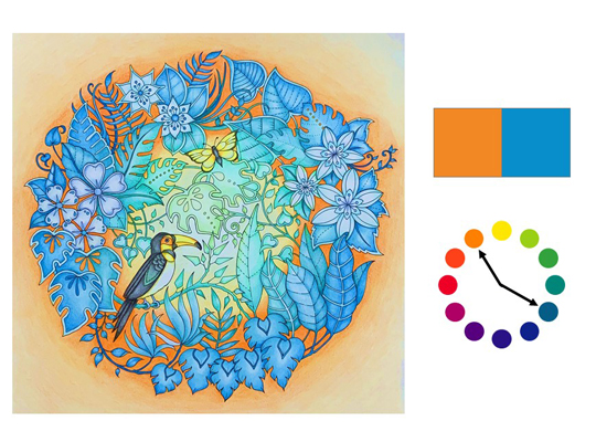 色のトリセツ: 大人の塗り絵 配色のアイディア ~ 色の位置関係に注目。