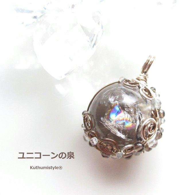スモーキーレインボークォーツ・スフィアペンダント ワイヤージュエリー☆ワイヤーアクセサリー☆ワイヤーラッピング天然石ネックレス☆KuthumistyleⓇ☆クツミスタイル。