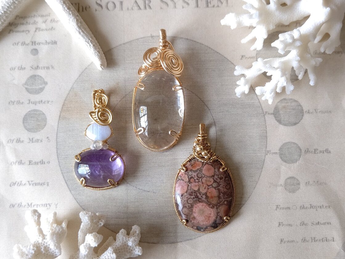 ワイヤーアクセサリー 天然石ペンダント、作り方、wire jewelry making、簡単、初心者向け、ハンドメイド、 wirewrapping、tutorial、Pendant。
