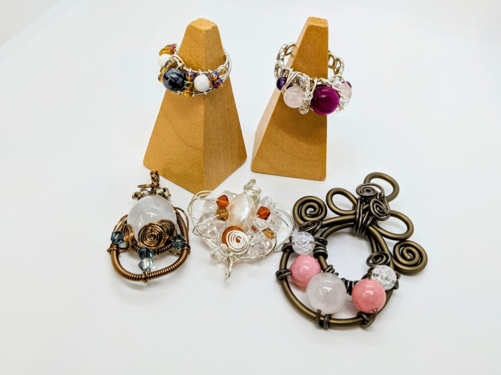 緊張しないで扱える石で、 本番前の手慣らし。 ワイヤーラッピングワイヤーラップワイヤージュエリーワイヤーアクセサリー天然石アクセサリー天然石ワイヤーアクセサリー個性的アクセサリー一点物アクセサリーハンドメイドジュエリー表現。