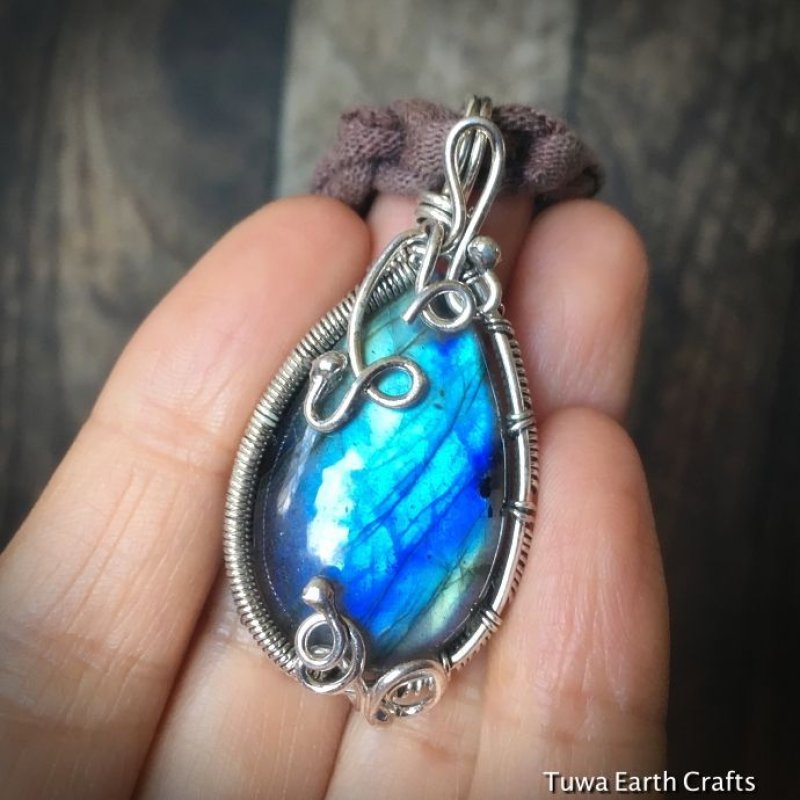 大ぶり神秘的ディープブルー高品質ラブラドライト1点物ペンダントトップ*スターリングシルバーワイヤーアート 天然石パワーストーンアクセサリーST3275 天然石アクセサリー-天然石ペンダントトップ・ネックレスシルバー Tuwa Earth Crafts。
