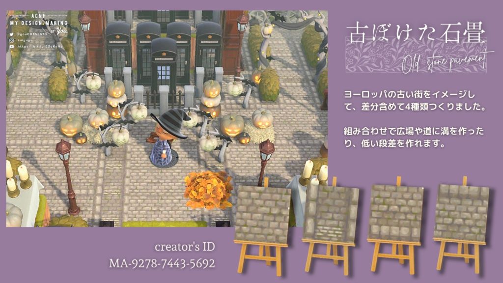 作品ID&QRコード あつ森&とび森 マイデザイン『和風の石畳』。