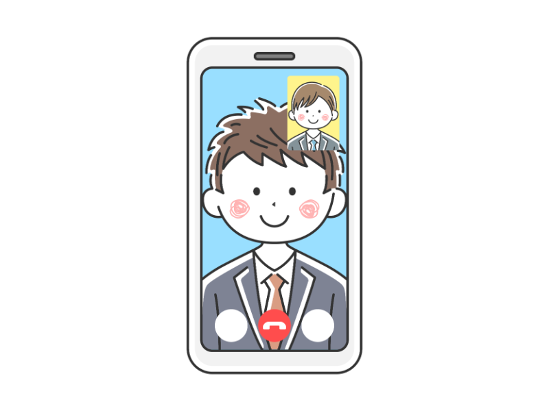 スマートフォンでビデオ通話をするビジネスマン02の無料イラストイラストセンタ。