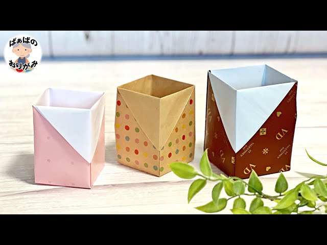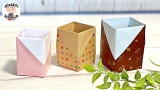 折り紙 ペン立てに使える!箱の簡単な折り方・作り方 縦長型ORIGAMI。