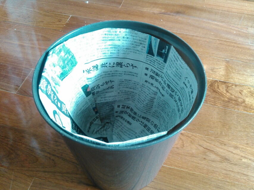 新聞紙で作るゴミ箱 大きいサイズ Trash can made from newspaper。