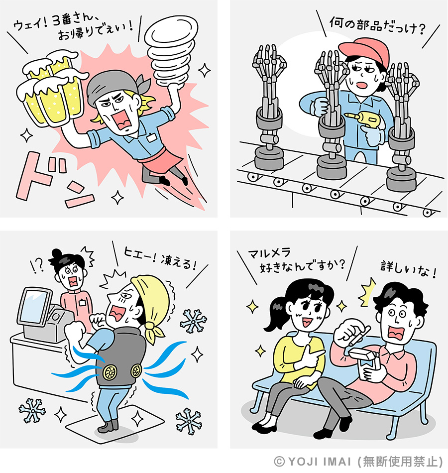 アルバイト情報サイト 広告用イラスト「バイトあるある」。