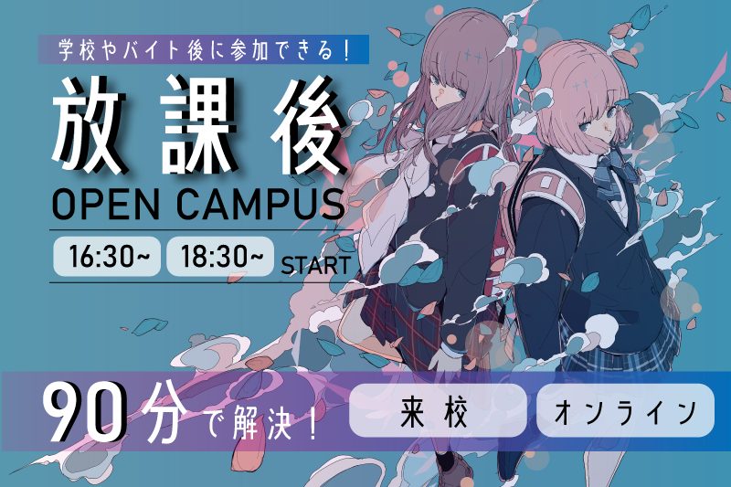 放課後オープンキャンパス 学校やバイト終わりに!90分で進路の悩みを解決!~高校3年生・2年生向け~│バンタンデザイン研究所 専門部デザイン・映像カレッジ - デザイン・イラスト・フォト・映像の専門校 東京・大阪・名古屋・札幌。
