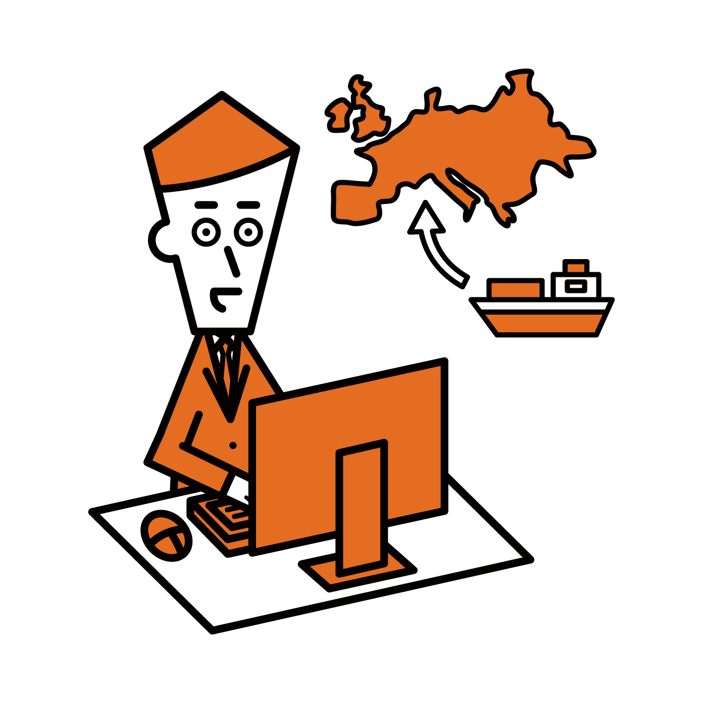 輸出入業務 個人事業者 - 産業イメージ 無料イラスト。