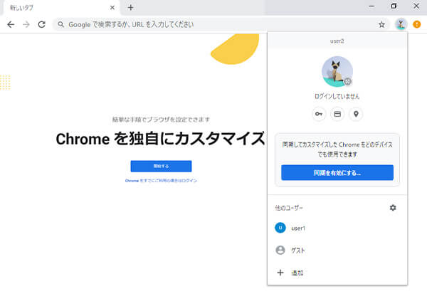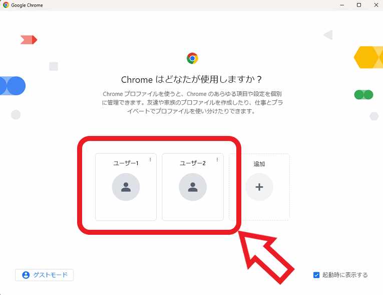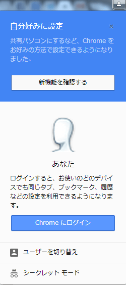 Chromeを立ち上げた際の「Chromeはどなたが使用しますか?」を表示にする方法。