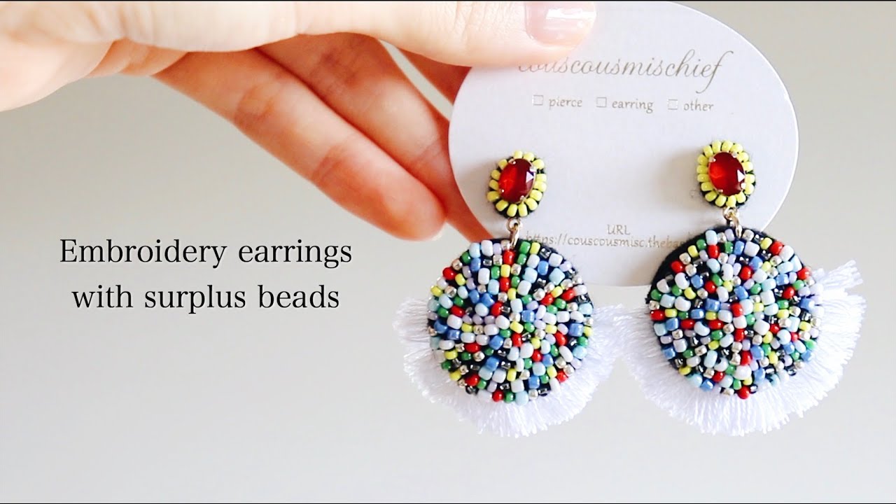 余ったビーズを使ってピアス作り初心者でも簡単ビーズ刺繍ピアスの作り方DIY making a handmade embroidery beadsearringsハンドメイドアクセサリー刺繍イヤリング。