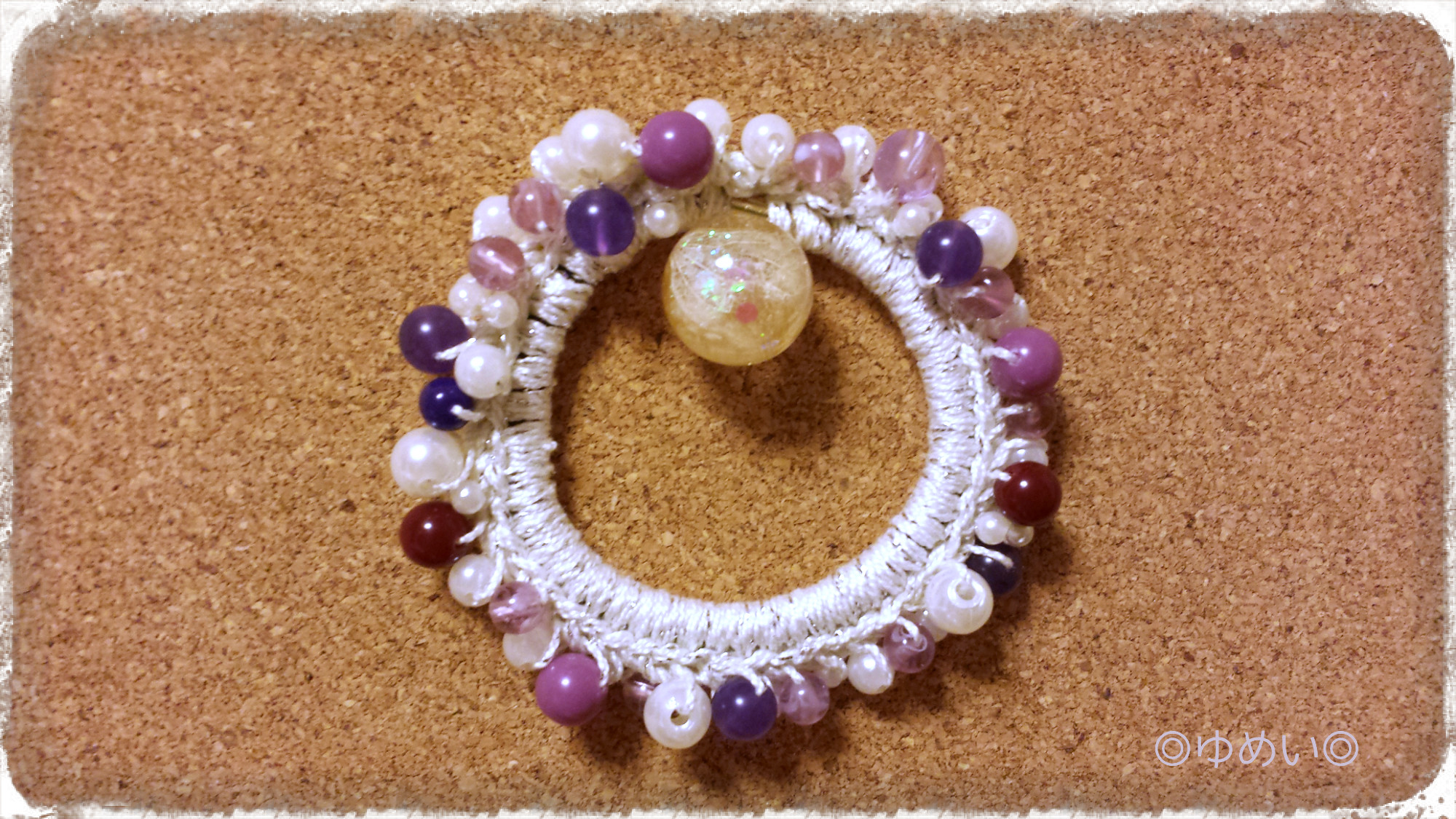 2作目完成! 余分な金具もいらないからこれいいわ! 余ってたビーズの使い道としてもいい! 今回は丸大ビーズです。ビーズの在庫を見たら丸小しかないので、次は丸小で編むかな。目が見えないのと戦いだな😅拡大鏡しないと編めない。チューブクロッシェチューブ。