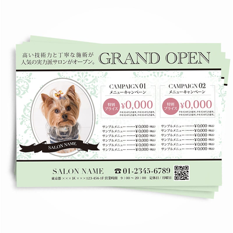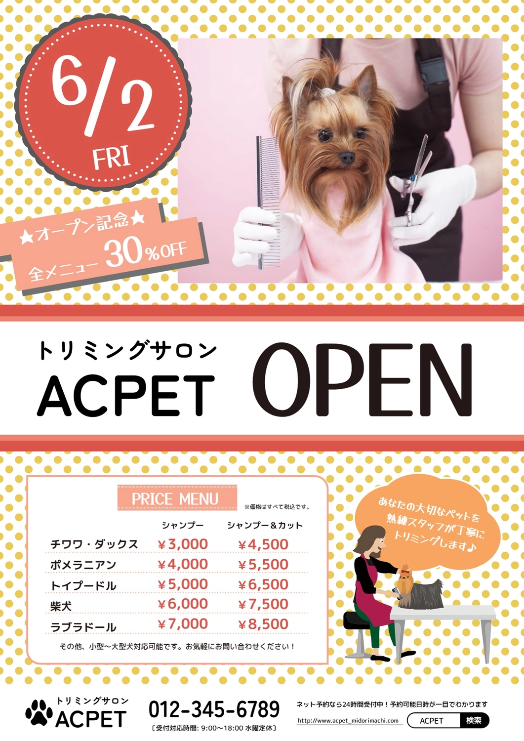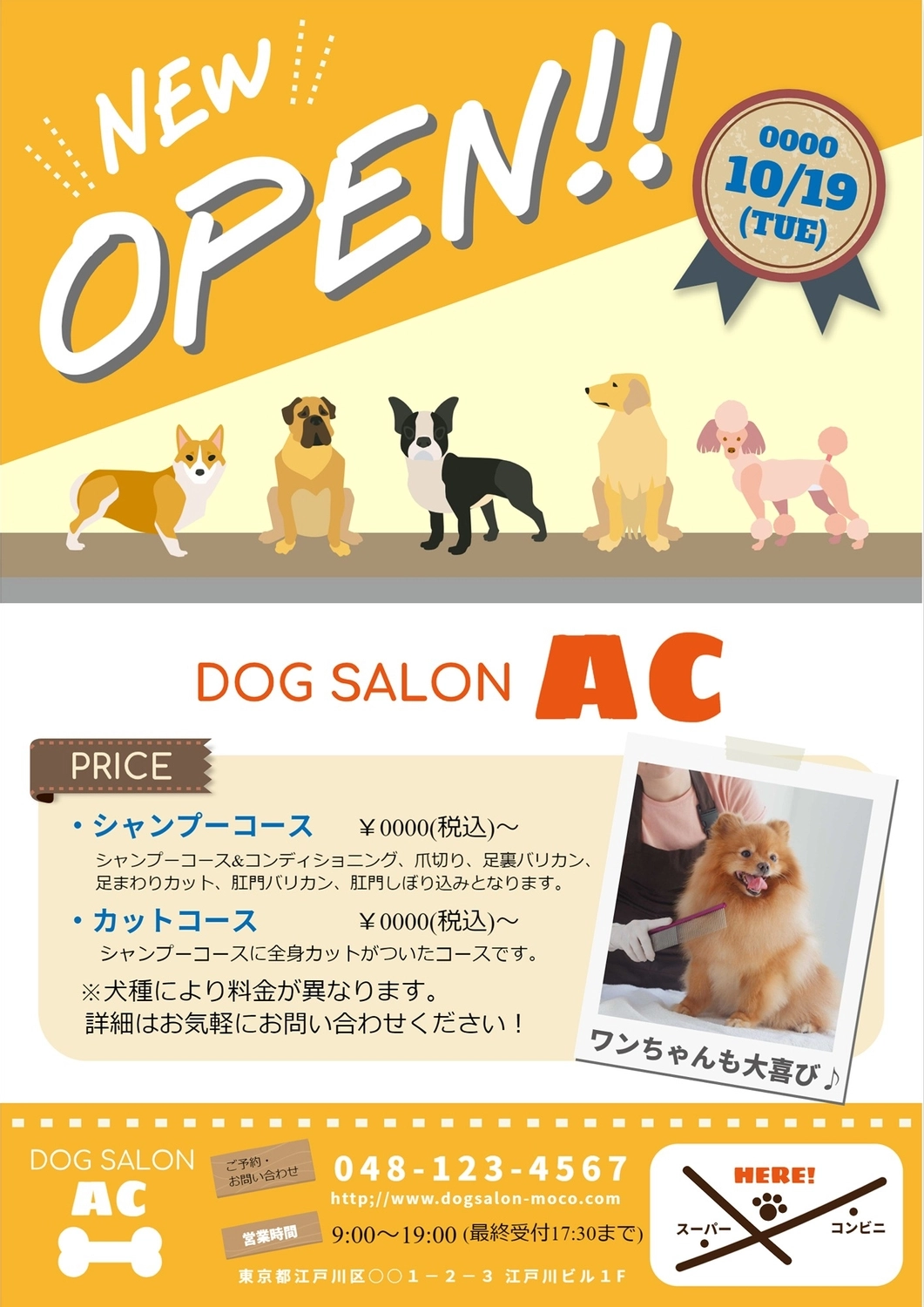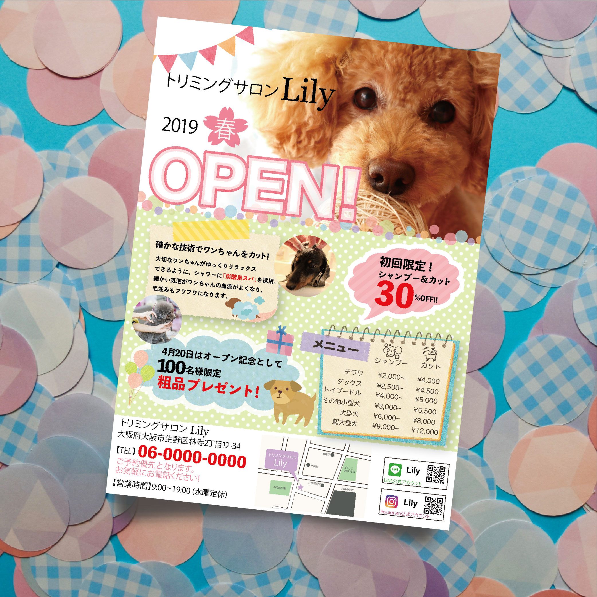 ペットサロン開店の無料テンプレートチラシ大毎上町オリコミ 大阪の新聞折込チラシ広告ならお任せ。