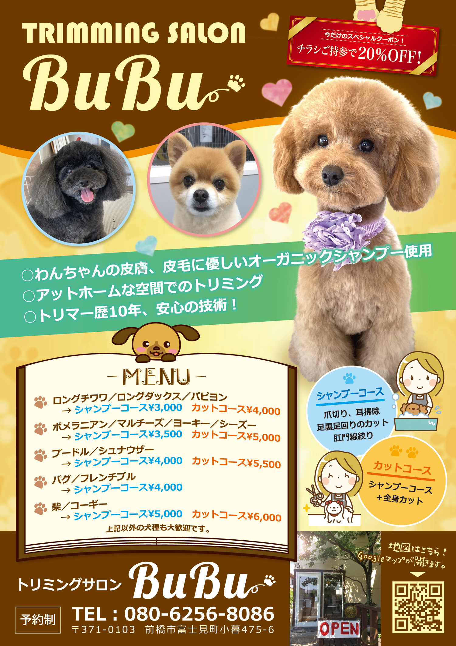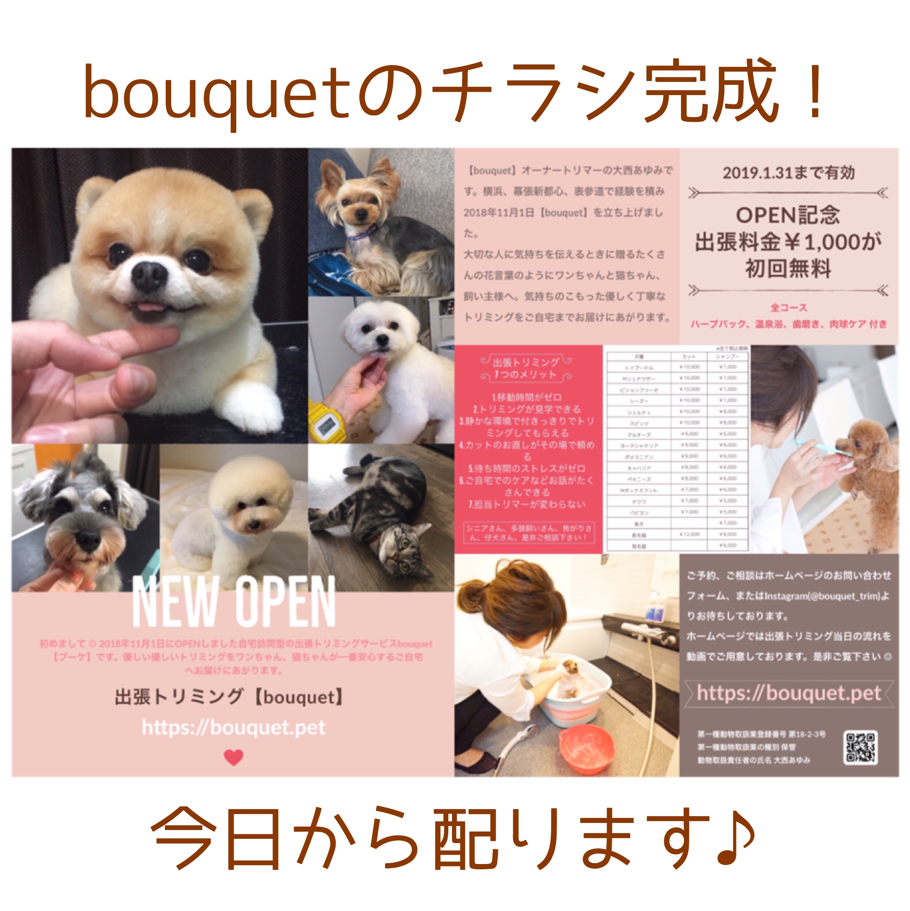 チラシ完成しました❁ - 出張トリミング千葉東京bouquet犬猫のシャンプーカット。