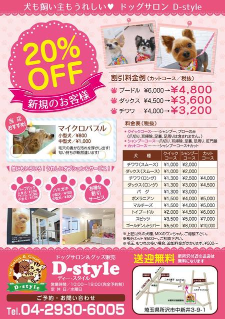 トリミングサロン D-style のチラシの副業・在宅・フリーランスの仕事チラシ作成・フライヤー・ビラデザインの求人・案件なら ランサーズ。