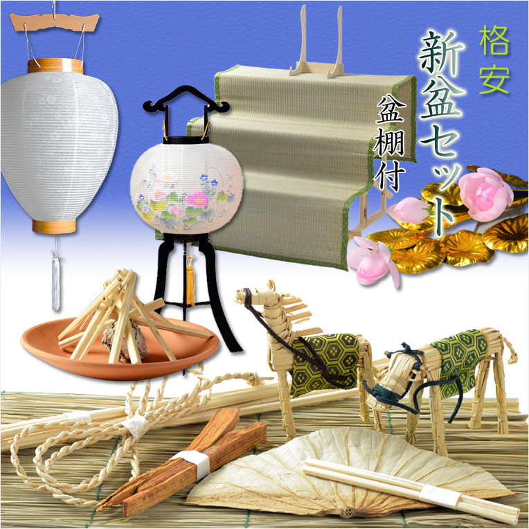 お盆用品新棚 あらたなミニ初盆・お盆用品,お迎え用品お仏壇の浜屋オンラインショップ。